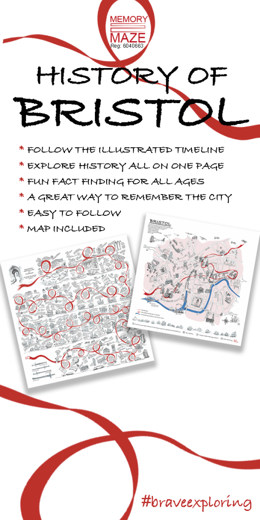 I love history. Do I consider myself an expert in the field? No. However, I am an educator and have a natural desire to enhance my own education and pass on what I know. The past is so easily forgotten with the excitement and business of the present and future. I rarely stop to think about how all of these things that I take for granted came about. I have charted 1000 years of Bristol’s history through illustration, making it accessible to the young, middle aged and old alike; I have been amazed by my discoveries of this city and an understanding of how Bristol was made has spurred me on to do the same for other cities around the world. Hence Memory Maze was born! There is so much that I want to share that cannot be squeezed into one illustrated timeline and I love the fact that I can share these things here.
